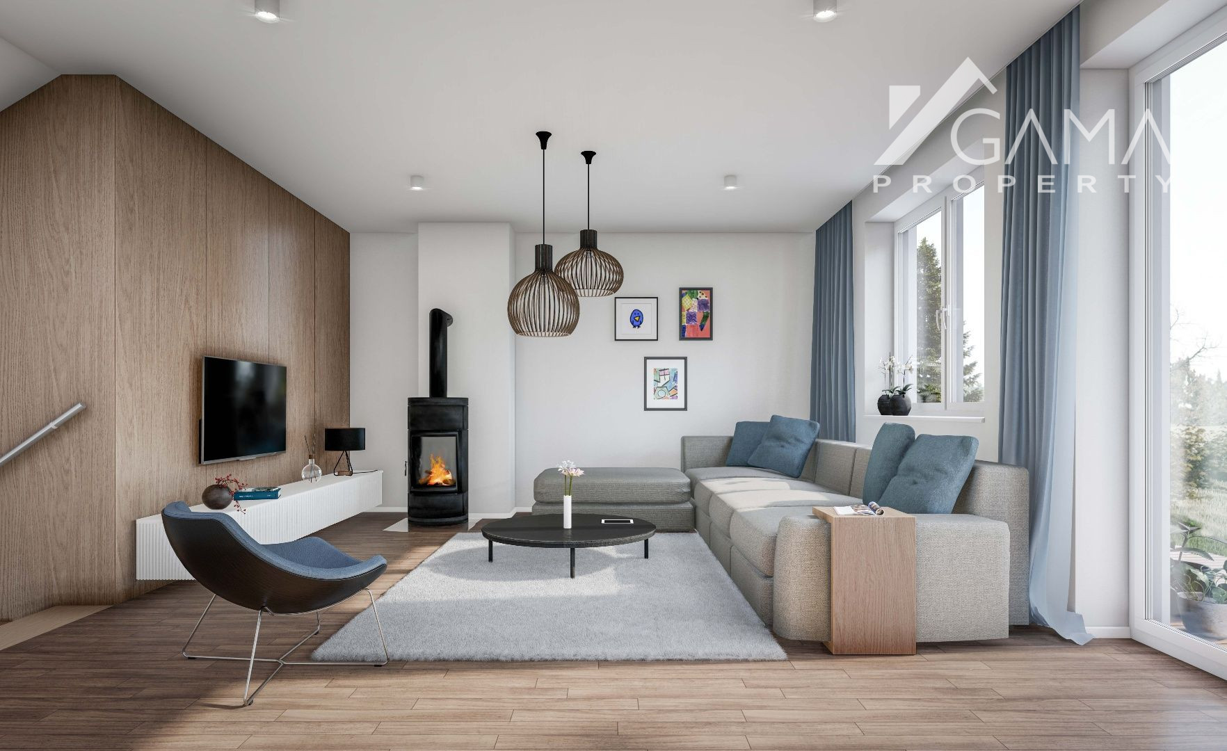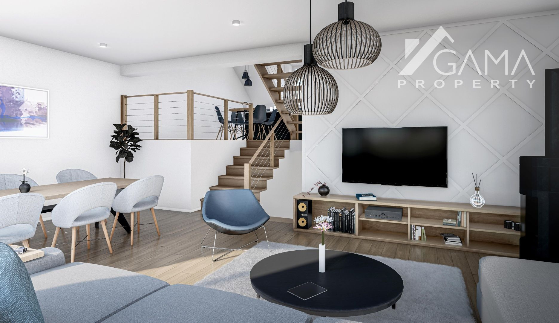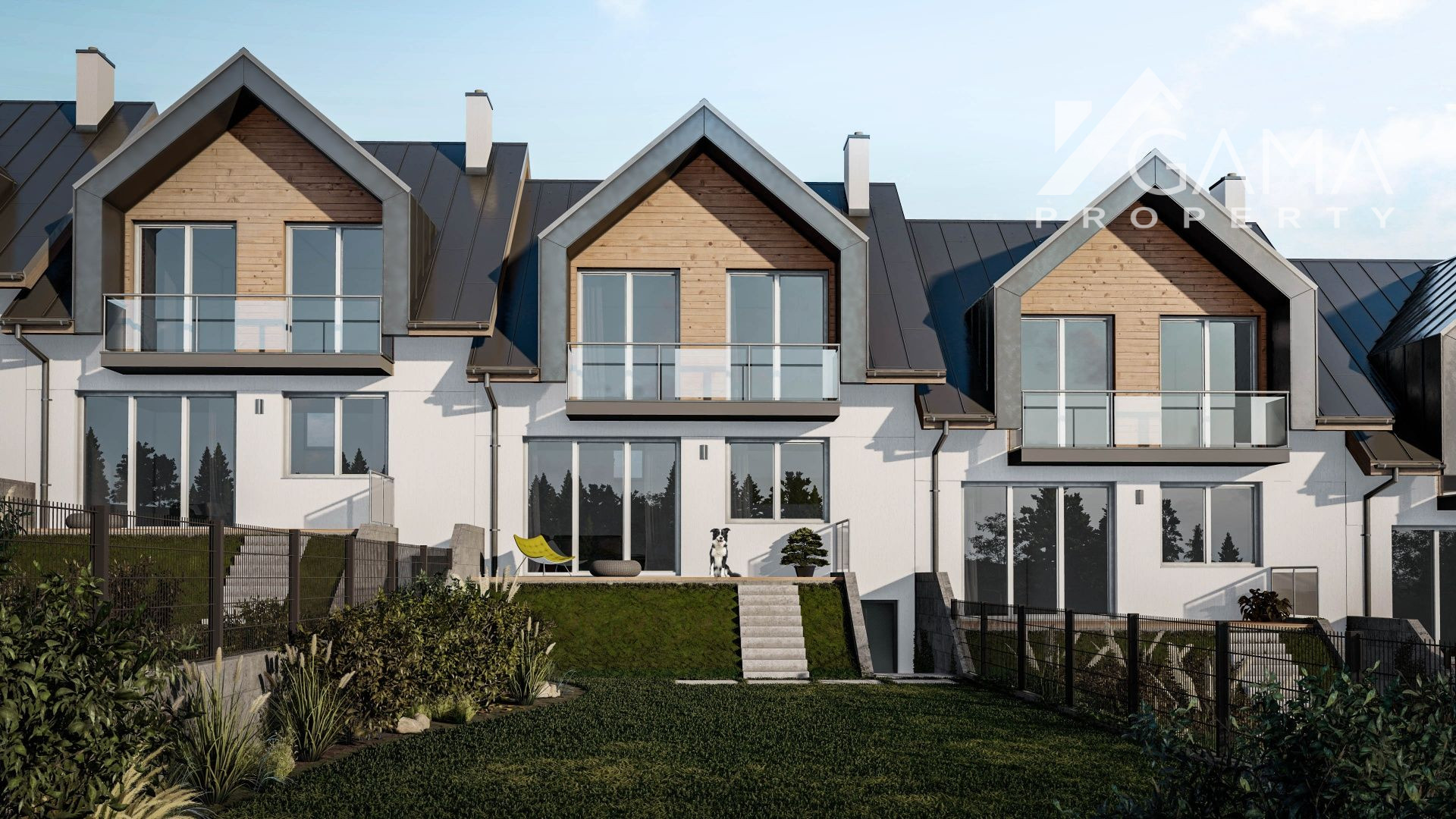 Projekt rodinných domov bol vkusne riešený vzhľadom na danú lokalitu. Na prízemí sa nachádza garáž s dielňou, technickou miestnosťou a toaletou. Z tohto podlažia sa vieme dostať priamo do obývacej izby ktorá má krásny priamy východ do záhrady. Obývacia izba je medziposchodím prepojená s kuchyňou s jedálňou a veľkou spálňou s vlastnou kúpeľnou a WC. Na najvyššom podlaží a nachádzajú 2 samostatné izby s balkónom, ktoré majú spoločnú kúpeľňu s WC. Dom máúžitkovú plochu 150m².