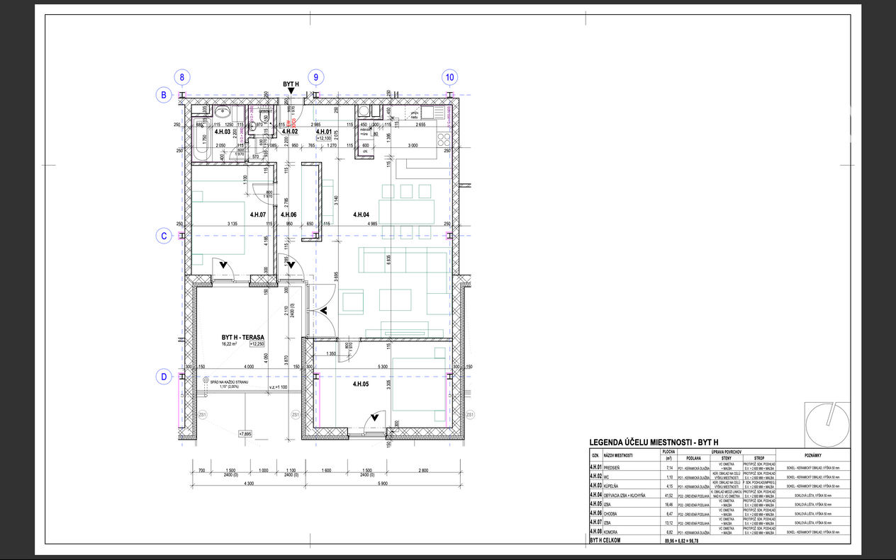 Plocha bytu: 96,64 m2 (89.98m2 + komora 6.68m2) terasa 16,22m2 + parkovacie miesto v cene.